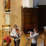 Pour les patients de la clinique, un concert "télévisé" était organisé. Beau témoignage alliant qualité des chants, témoignage de foi... et de joie. A la chapelle, les soeurs de l'infirmerie avaient rejoint la communauté pour en profiter aussi. Le tout préparé en une heure, un exploit...