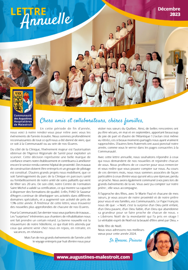 Vous y trouverez les événements majeurs qui ont jalonné la vie de notre communauté, ainsi que de nos œuvres en 2023 et de nombreuses photos.