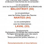 Viens découvrir 3 formes de vie religieuse (apostolique, monastique, canoniale), en passant 2 jours en immersion dans chaque communauté, avec d'autres jeunes qui se posent aussi des questions.