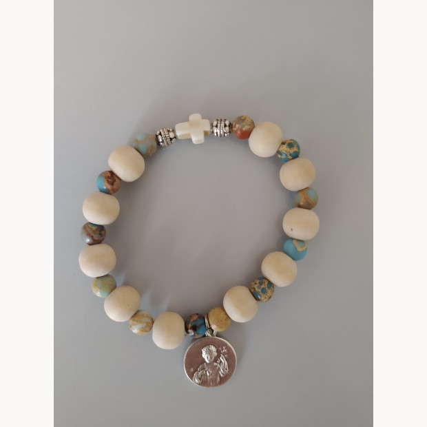 Perles en bois d'olivier (fournisseur à Bethléem) ou perles claires en bois naturel.